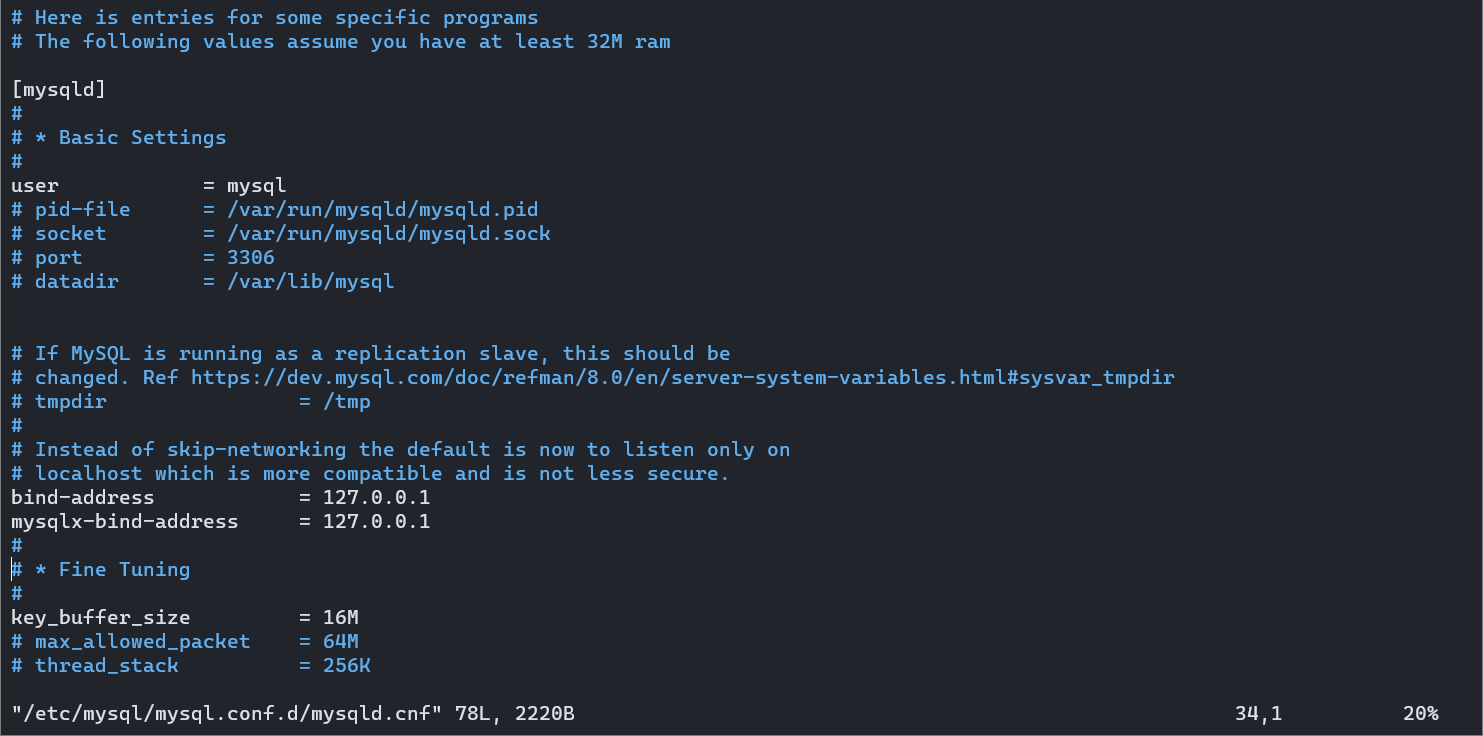 打开 /etc/mysql/mysql.conf.d/mysqld.cnf